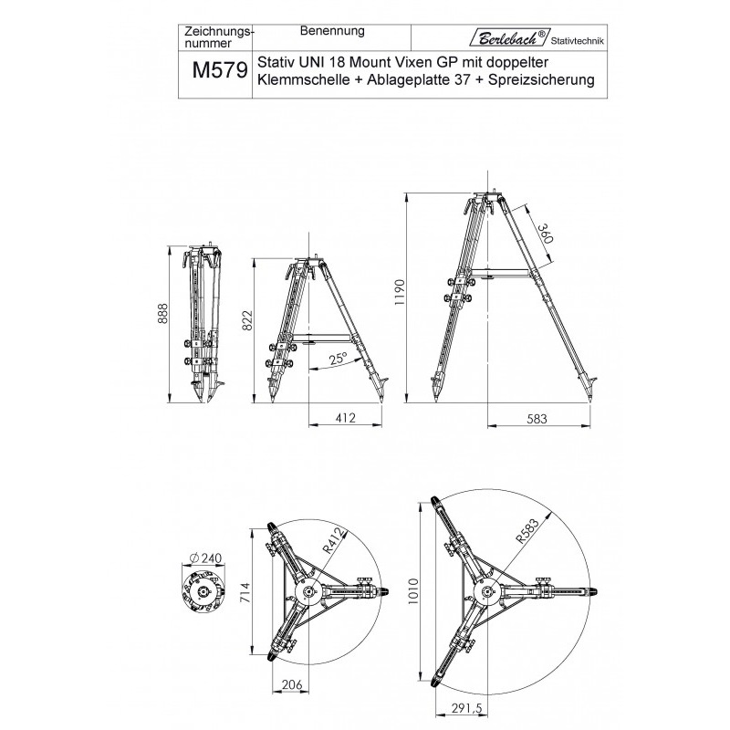 Abspreizwinkel der Stativbeine beträgt 23°.