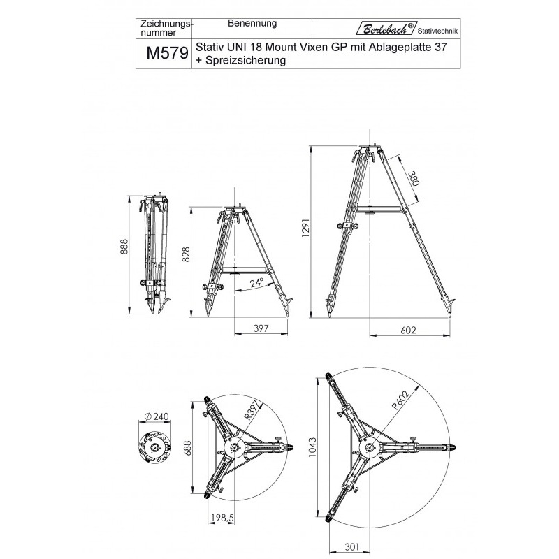 Abspreizwinkel der Stativbeine beträgt 23°.